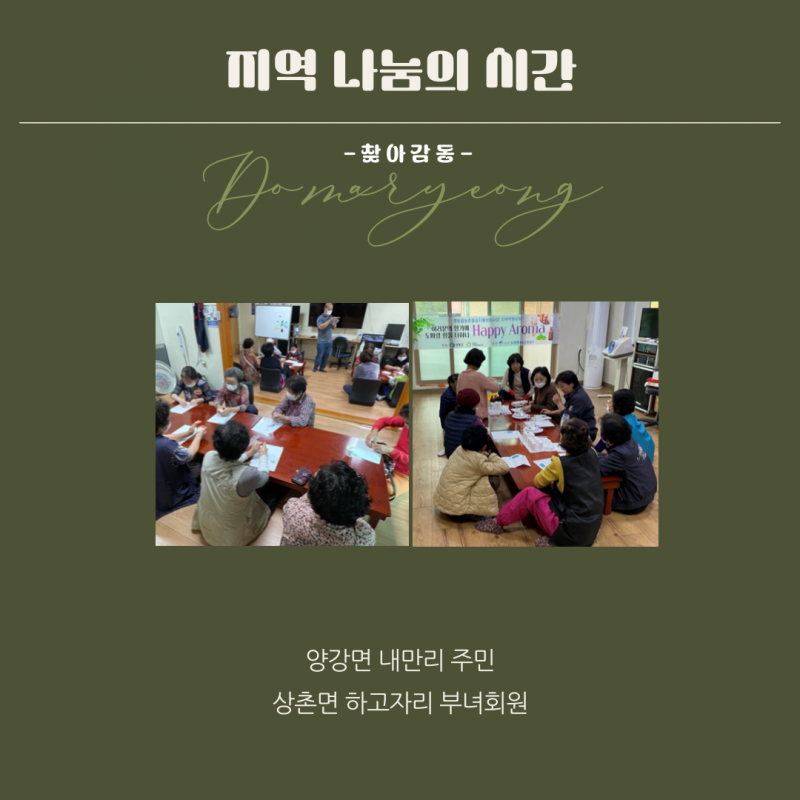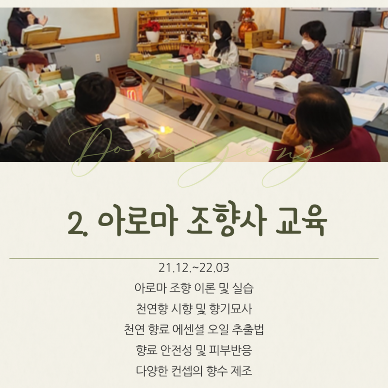 신활력사업단 주민공모사업 [조향공방] 페이지 정보 작성자 관리자 작성일24-07-28 20:22 조회647회 관련링크 다음글 목록 본문 [사업실적]► 14회의 체험프로그램으로 영동군내 찾아가는 무료 체험 제공► 2022년 '도마령 영농조합법인' 전국 우수마을 선정► 마을주민 3명 조향사 자격증, 농어촌 체험 지도사 2명 취득► 3차례의 현장교육과 11회차 방문교육 실시► 제작한 차량 방향제 200병 기부 활동 다음글 목록